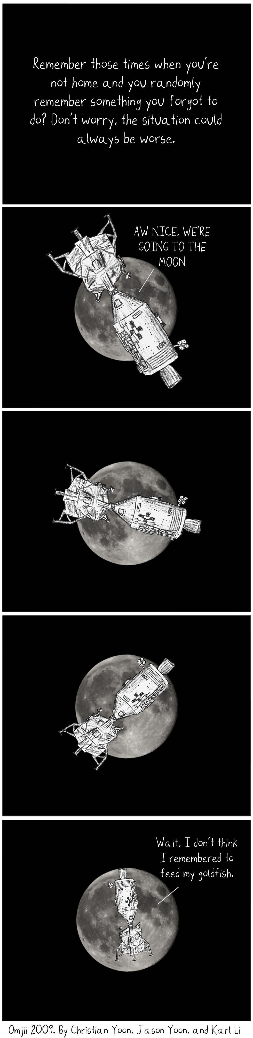 This one time I forgot to feed my goldfish, but it was okay because my brother fed the fish instead.